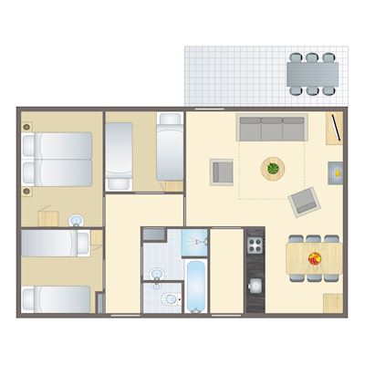 Beskrivelser, billeder, specifikationer og grundplaner af ferieboligerne er vejledende og kan variere.